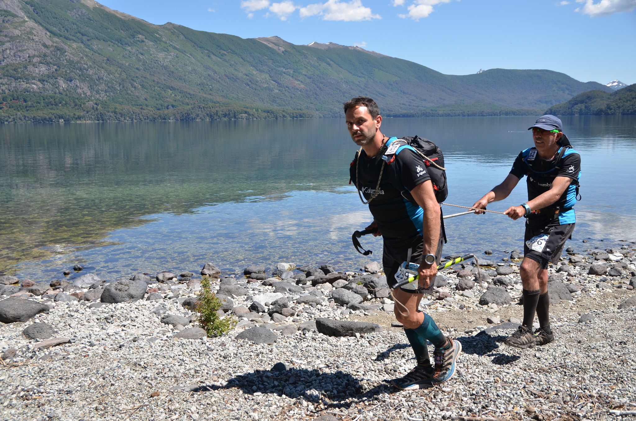 Último posteo de una historia que no dejaré nunca de recordar, momentos increíbles que viví, sentí y vi. Aunque alguien que lo vivió y no lo vio, tampoco lo olvidará. Miguel Manríquez corrió los 100 km de El Cruce Columbia sin ver, ni las montañas, ni los lagos, ni la nieve, ni el cielo cristalino que acompañó cada etapa, ni los pasos de su guía, Cristian Barreiro. “Lo más complicado fueron las piedras de la primera etapa, eran tantas que Cristian no podía avisarme”, me cuenta Miguel sin ningún dramatismo “pero en realidad me encantó la carrera y llegar en la mitad del pelotón me pone muy contento y agradecido a Cristian por llevarme sin lastimarme casi y poder ir por donde todos ven”.