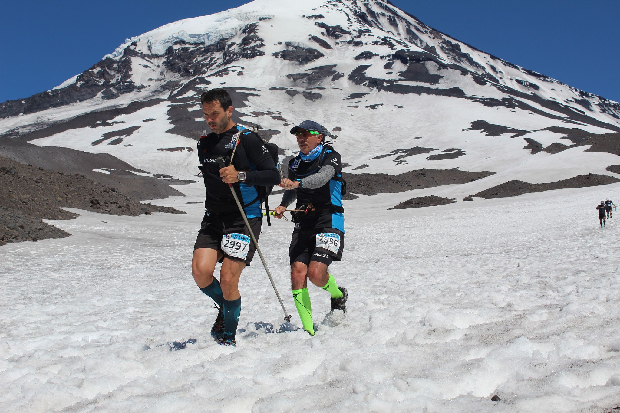 En ese mismo ascenso, cuando tocaba las regiones de nieve, mientras seguía pegado detrás de él, me dice: “metele el puntazo adentro de la nieve, así se clava el pie”. Estaba muy empinado y yo venía patinando comoteléfono de carnicero. Fue empezar a pegarle un poco más de puntín al manto blanco y todo se solucionó. No te digo que subí como Sergio Pereyra (el ganador que nos sacó casi una hora), pero seguro que iba más cómodo. Ahora sí, cuarta gran lección, también viene con nieve, pero hay que usarla con cuidado.